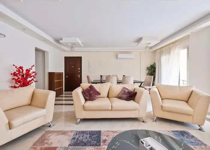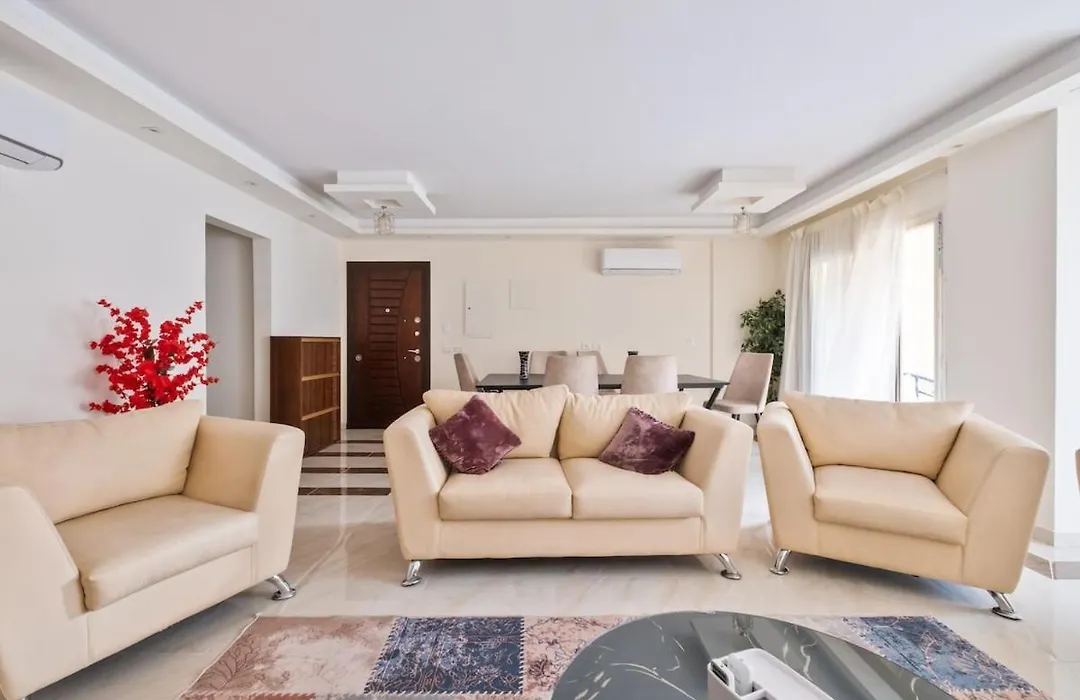 Situated approximately 25 minutes' walk from the Mosque of Al-Muayyad, the spacious 175 m² Bright 3-Br Apartment Stone Residence, New Cairo also boasts easy access to El Giza train station which is 28 km away. With a plunge pool featured, the apartment guarantees a more relaxing stay.